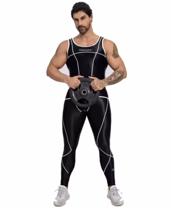 AMORESY Uranus Series High-Performance Synthetic stretch Running Vest and Gym Pants Set – Glossy, Breathable, and Sweat-Absorbing Design