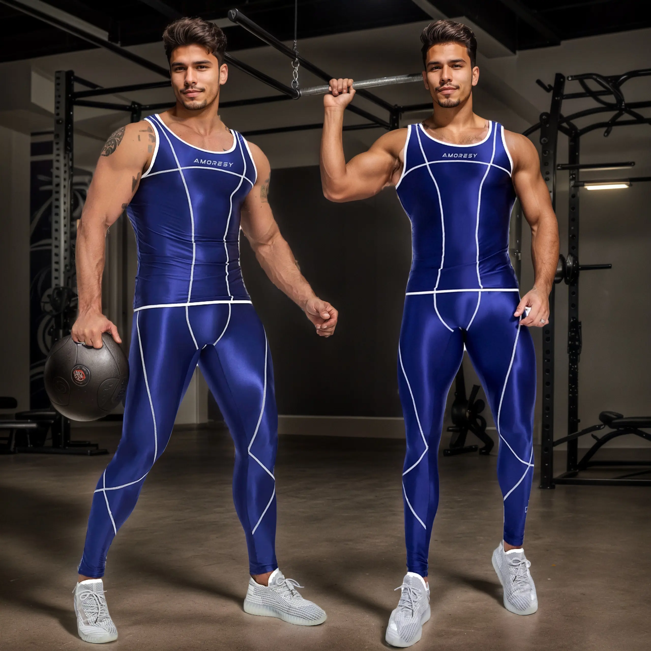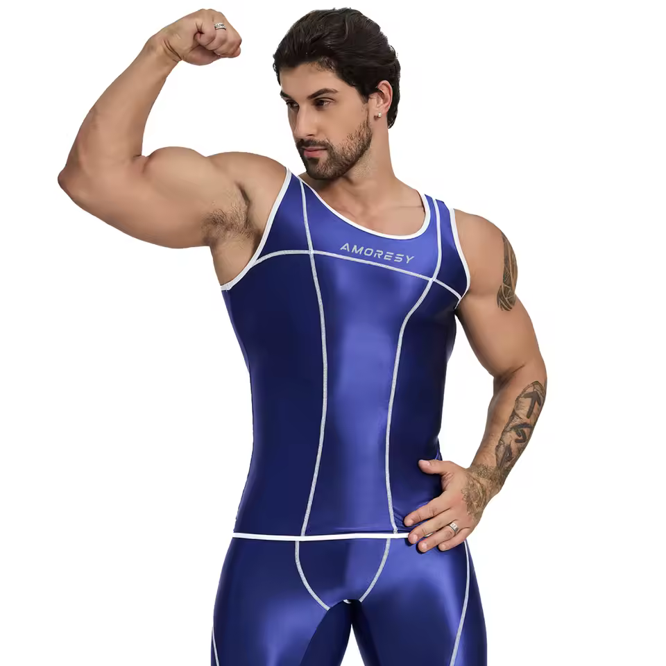 AMORESY Uranus Series High-Performance Synthetic stretch Running Vest and Gym Pants Set – Glossy, Breathable, and Sweat-Absorbing Design